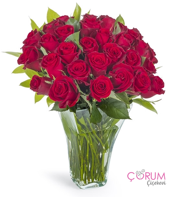 Silindir Vazo Kırmızı Gül