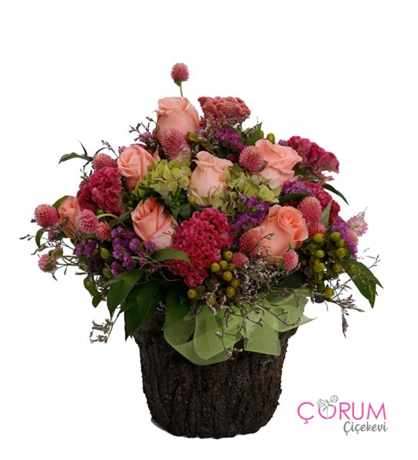 Doğal Kütükte Papatya 3 gül